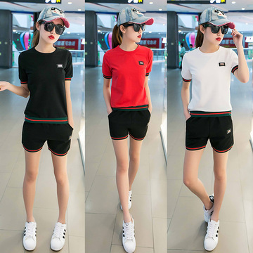 2016新款韓版雙C短袖+七分褲修身顯瘦時(shí)尚運(yùn)動(dòng)休閑兩件套裝 /