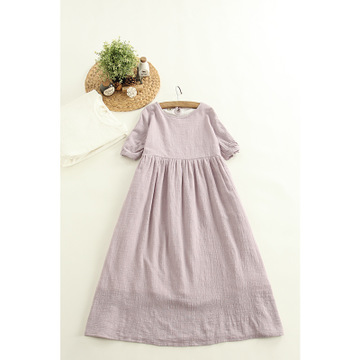 【小希家】人手必備。文藝簡約純色寬松中長款圓領(lǐng)短袖打底連衣裙 /