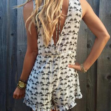 2016夏季新品女裝連體褲 歐美時(shí)尚一字領(lǐng)印花抽繩系帶連體短褲 /
