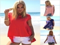 速賣通ebay外貿(mào)女裝歐美2016夏季新款海灘 休閑上衣不規(guī)則下擺T恤 /