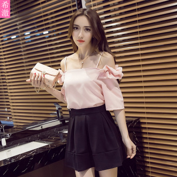 2016夏新品歐韓風(fēng)女短袖吊帶上衣短裙修身氣質(zhì)時(shí)尚套裝兩件套 /