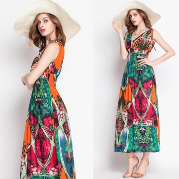 2016夏季速賣通爆款熱賣歐洲站印花波西米亞度假長裙沙灘連衣裙 /