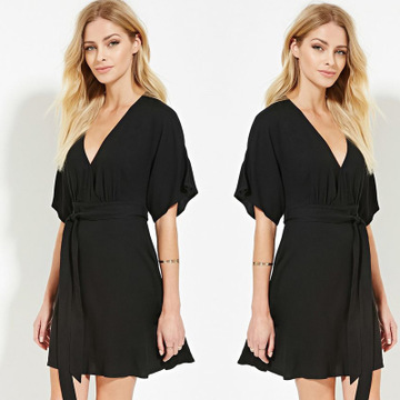 2016ebay速賣通貨源歐美新款熱賣雪紡 性感低胸深v領連衣裙 /