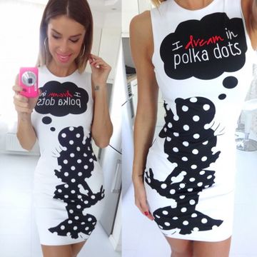 2016歐美速賣通爆款女裝后背交叉英文字母圓點(diǎn)印花包臀連衣裙 /