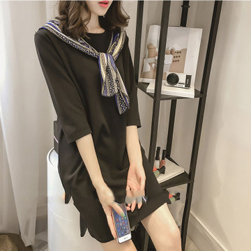 夏季雪紡連衣裙2016新款韓版時(shí)尚大碼領(lǐng)帶七分袖t恤短裙子 /
