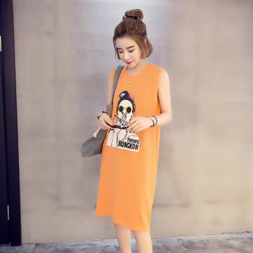 小穎家 2016夏裝新款韓版百搭修身顯瘦圓領(lǐng)無袖印花中長(zhǎng)款T恤 女 /