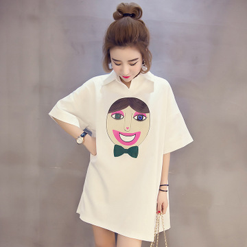 小穎家 2016夏裝新款韓版百搭寬松顯瘦卡通印花翻領(lǐng)短袖連衣裙 女 /