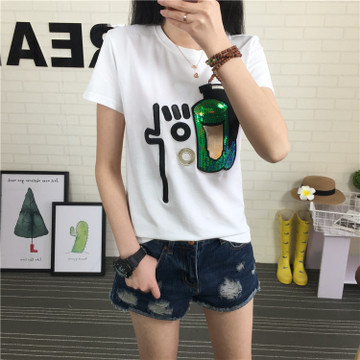 2016春夏新款 明星同款 亮片字母圖案純棉質(zhì)短袖T桖女 時尚休閑 /