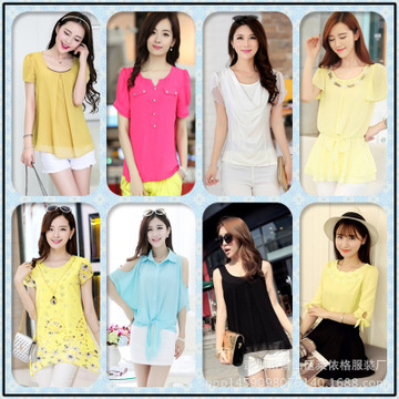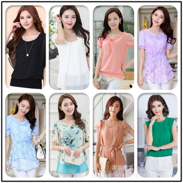 地?cái)偀豳u(mài)外貿(mào)原單女裝批發(fā)短袖雪紡衫 韓版雜款女裝夏季雪紡衫女 /