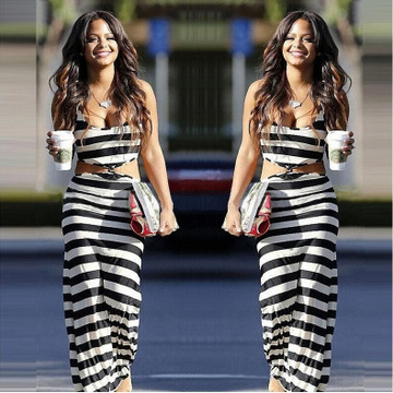 速賣(mài)通EBAY爆款 外貿(mào)原單性感無(wú)袖條紋圓領(lǐng)背心長(zhǎng)裙連衣裙 6312 /