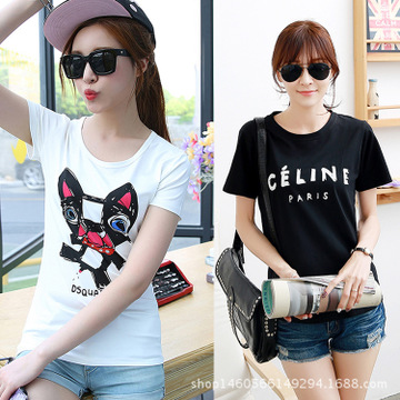 2016新款女式T恤 時尚百搭圓領花樣印花女短T恤 庫存批發(fā)女裝T恤 /