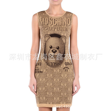 2016歐美款 小熊土豪金無袖連衣裙針織衫背心裙 /