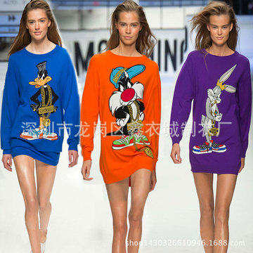 歐美卡通動漫圖案毛衣 中長款針織連衣裙 /
