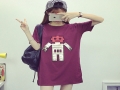 2016夏季新款短袖T恤女韓版卡通機(jī)器人大碼寬松顯瘦中長款上衣潮 /