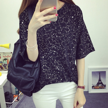 女裝春裝2016新款潮拼接閃片t恤女夏短袖韓國寬松百搭時尚打底衫 /