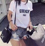 現(xiàn)貨周揚(yáng)青同款不規(guī)則G家字母破洞鏤空短袖T恤圓領(lǐng)女裝同款 /