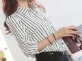 2016夏季潮流時尚條紋女式襯衫寬松翻領中長款開衫zhi襯衣女批發(fā) /