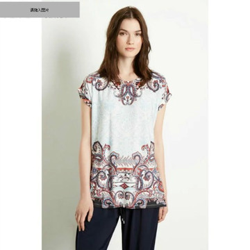 春夏女裝復(fù)古印花修身顯瘦百搭學(xué)生打底衫 圓領(lǐng)t恤 短袖T恤 /