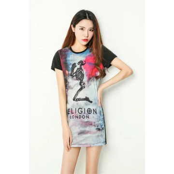 2016新款扎染骷髏印花短袖迷你連衣裙春夏款 韓版顯瘦 連衣裙 /