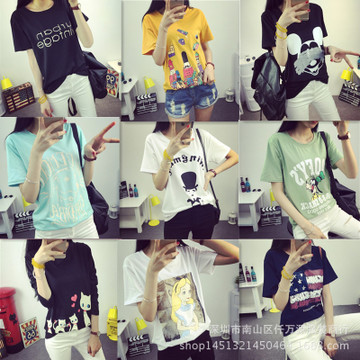 2016新款夏季女式短袖t恤打底衫女 地?cái)傌浽磁b印花圓領(lǐng)短袖 /