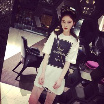 2016夏裝新款韓版女上衣中長款女學(xué)生短袖打底衫寬松大碼圓領(lǐng)T恤 /