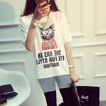 2016春裝女裝新款潮卡通印花打底衫大碼雪紡拼接短袖T恤上衣女夏 /