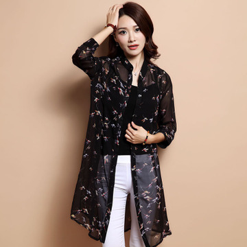 夏季印花雪紡衫長(zhǎng)袖防曬衫女韓版中袖披肩外套薄款開衫2016潮品 /