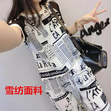 韓版夏季新款女裝2016胖MM長褲時(shí)尚休閑短袖T恤大碼兩件套裝女潮 /