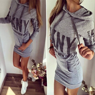 速賣通爆款2015秋冬款DKNY連帽包臀長袖連衣裙女裝 /