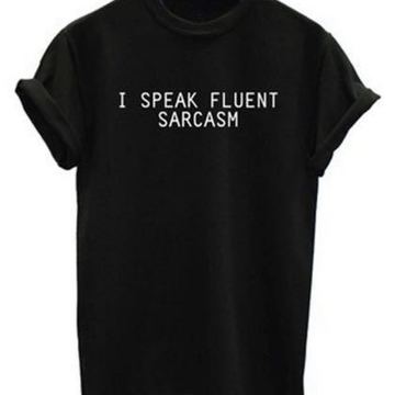 2016歐美新款I(lǐng) speak fluent sarcasm字母印花圓領(lǐng)短袖女T恤 /