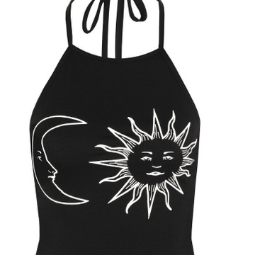 2016歐美外貿(mào)速賣通爆款太陽月亮印花掛脖吊帶背心 /