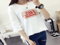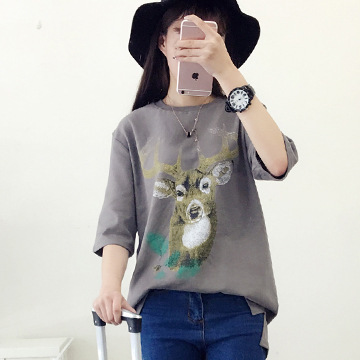 短袖T恤女韓版寬松磨毛中袖五分袖中長款體恤印花字母春夏棉上衣 /