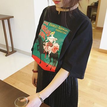 2016新款百搭街頭風(fēng)小開叉領(lǐng)彩圖玩味港風(fēng)白色黑色寬松大 /