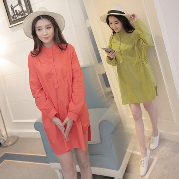 實(shí)拍現(xiàn)貨韓版2016春新款寬松大碼長袖襯衫孕婦裝連衣裙 /