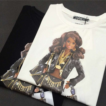 2016春夏走秀款芭比t恤女短袖娃娃印花圓領(lǐng)套頭純棉寬松潮牌上衣 /