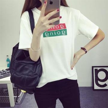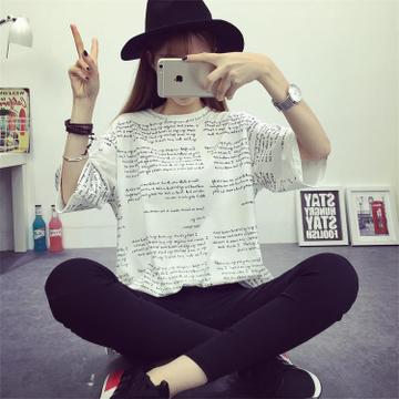 一件代發(fā)夏季新款韓版潮流大碼女寬松字母印花短袖T恤 女廠價批發(fā) /