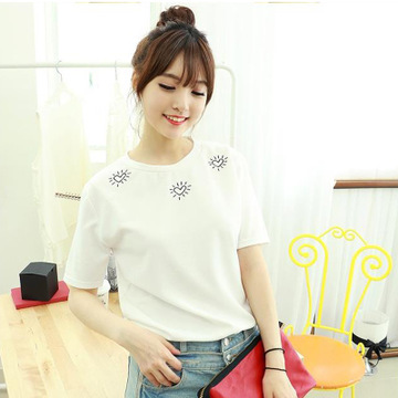 一件代發(fā)新款修身百搭白色t恤女款純棉簡(jiǎn)約心型短袖t恤女批發(fā) /