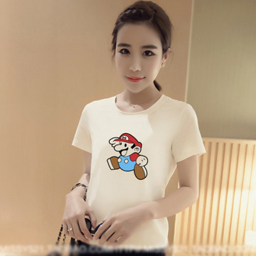 2016夏季新款韓版圓領(lǐng)可愛卡通修身短袖女裝T恤 /
