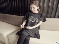 2016春裝新款韓版寬松條紋字母連衣裙拼接荷葉邊短袖打底裙 /