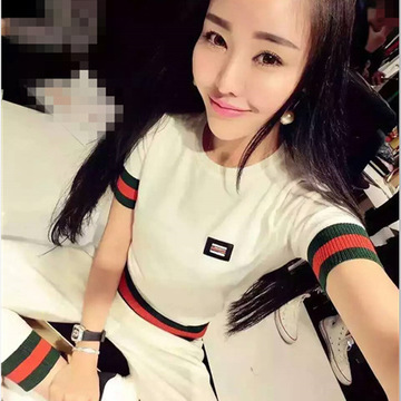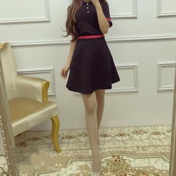 歐洲站修身時(shí)尚拼色短袖裙子 兩件套裝 /