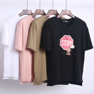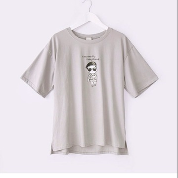 韓版前短后長(zhǎng)卡通圖案印花韓國(guó)短袖t恤女學(xué)生寬松裝打底潮流 /