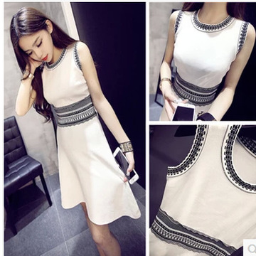 韓國2016春夏新款女裝連衣裙夏季顯瘦中長款針織中裙潮1628#現(xiàn)貨 /