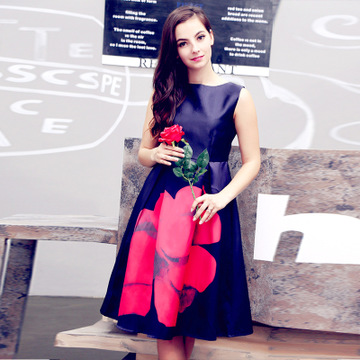 2016夏季新款女大花棉連衣裙歐美風(fēng)中長(zhǎng)款無(wú)袖大碼A字 /