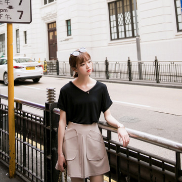 2016 夏韓版莫代爾體恤歐美寬松純色V領(lǐng)短袖t恤女 打底衫潮A /