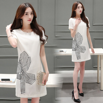 實(shí)拍歐美2016夏裝新款重工立體蝴蝶結(jié)刺繡顯瘦短袖修身連衣裙女 /