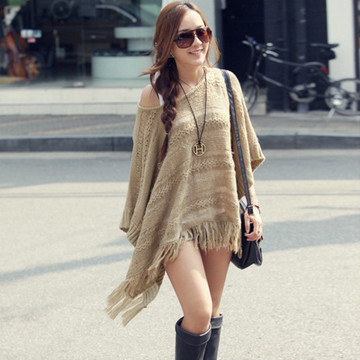 2016春季新款韓版大碼寬松圓領(lǐng)針織衫女 套頭純色下擺流蘇針織衫 /