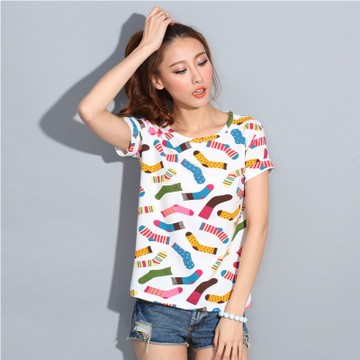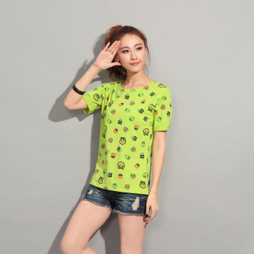 2016春裝棉印花打底衫女短袖t恤圓領(lǐng)百搭外穿修身t恤女 /
