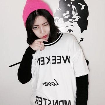 實(shí)拍16夏裝韓版寬松原宿BF風(fēng)字母男女款情侶裝短袖T恤打底衫 /