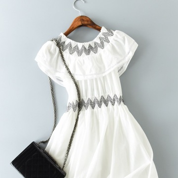 簡(jiǎn)介: 貨源類(lèi)別現(xiàn)貨 主圖來(lái)源實(shí)拍無(wú)模特 風(fēng)格清新 圖案條紋 工藝刺繡/繡花 產(chǎn)地常熟 庫(kù)存類(lèi)型整單 款式基本款 組合形式單件 裙長(zhǎng)短裙 裙型A字裙 領(lǐng)型圓領(lǐng) 袖型常規(guī)袖 袖長(zhǎng)短袖 品牌芊墨 腰型中腰 流行元素刺繡 上市年份/季節(jié)2016夏季 面料名稱(chēng)棉 主面料成分棉 主面料成分的含量80 是否庫(kù)存是 顏色白色波浪線(xiàn)連衣裙 尺碼S,M,L
