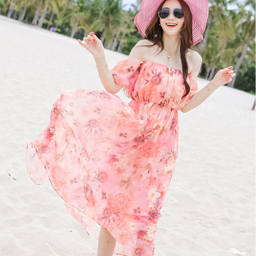 波西米亞長裙海邊度假顯瘦沙灘裙 夏女神雪紡修身連衣裙 /